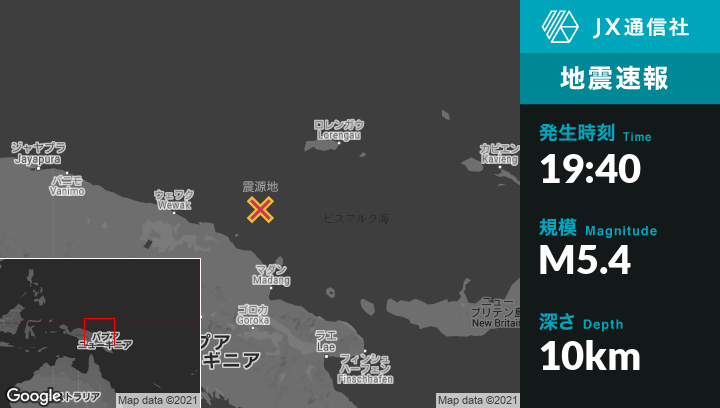 | 震源地 | パプアニューギニアのAngoramから東北東180kmの地点 |