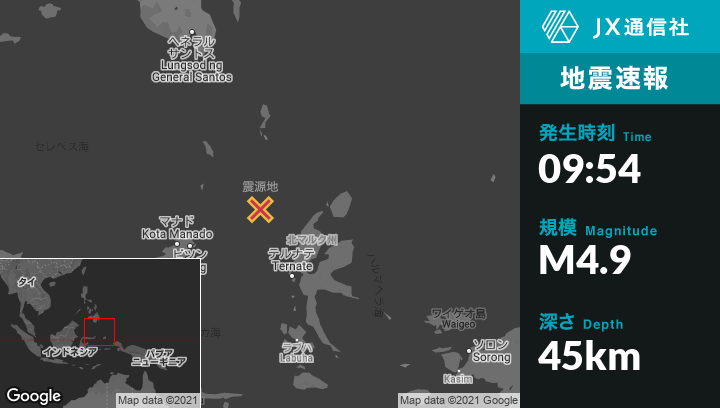 | 震源地 | インドネシアのTobeloから西北西163kmの地点 |