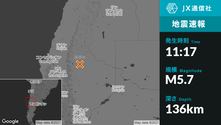 | 震源地 | アルゼンチンのAndacolloから南西14kmの地点 |