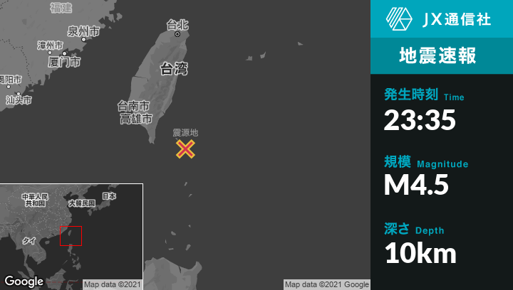 | 震源地 | 台湾のHengchunから東111kmの地点 |