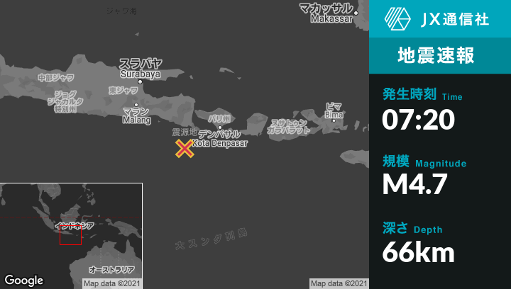 | 震源地 | インドネシアのMuncarから南南西87kmの地点 |
