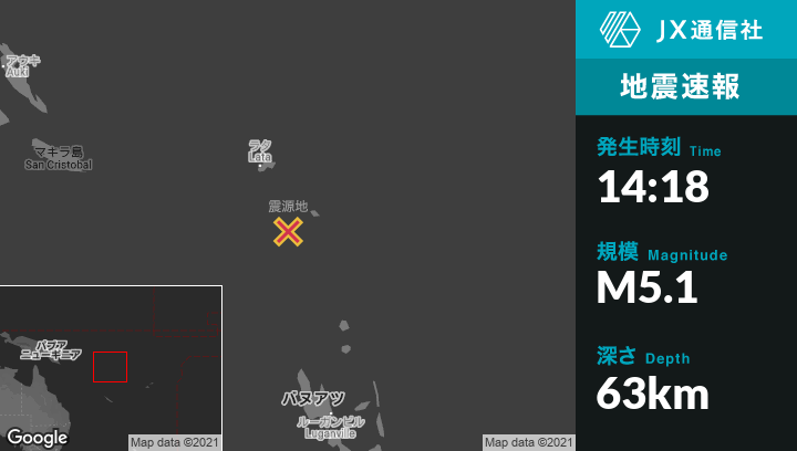 | 震源地 | ソロモン諸島のLataから南南東143kmの地点 |