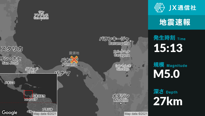 | 震源地 | パナマのSanta Isabelから北18kmの地点 |
