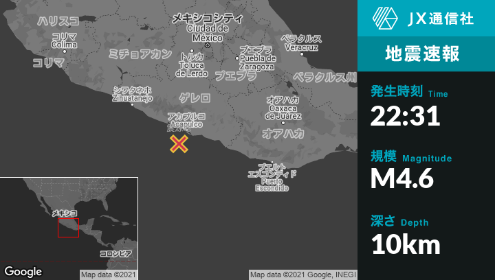 | 震源地 | メキシコのAcapulco de Juárezから南南西36kmの地点 |
