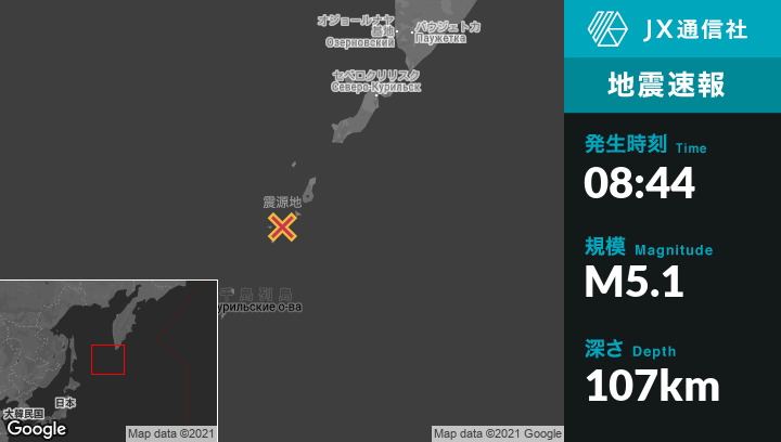 | 震源地 | ロシアのSevero-Kuril’skから南西229kmの地点 |