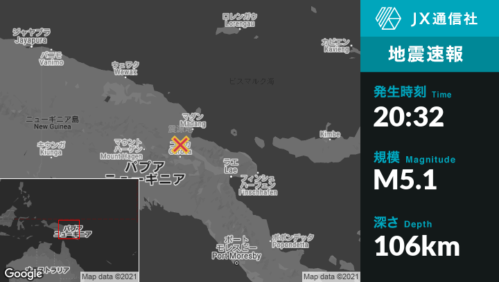 | 震源地 | パプアニューギニアのGorokaから北53kmの地点 |