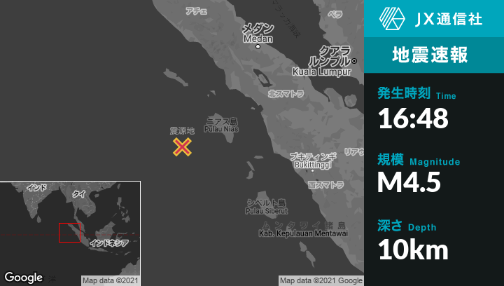 | 震源地 | インドネシアのSinabangから南210kmの地点 |