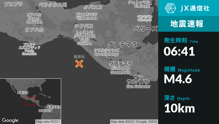 | 震源地 | メキシコのLa Esperanza (El Zapotal)から南南西111kmの地点 |