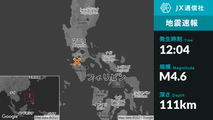 | 震源地 | フィリピンのSoloから西北西9kmの地点 |