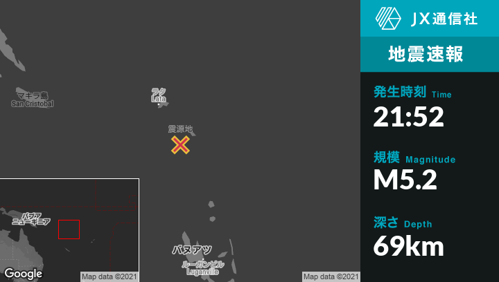 | 震源地 | ソロモン諸島のLataから南南東145kmの地点 |