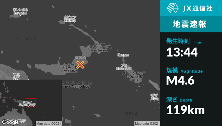 | 震源地 | パプアニューギニアのKokopoから南西143kmの地点 |
