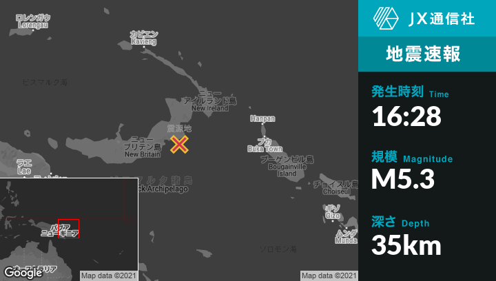 | 震源地 | パプアニューギニアのKokopoから南南西138kmの地点 |