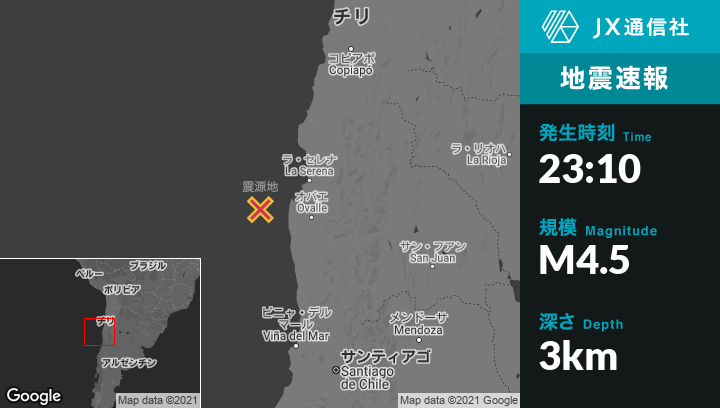 | 震源地 | チリのCoquimboから西南西105kmの地点 |