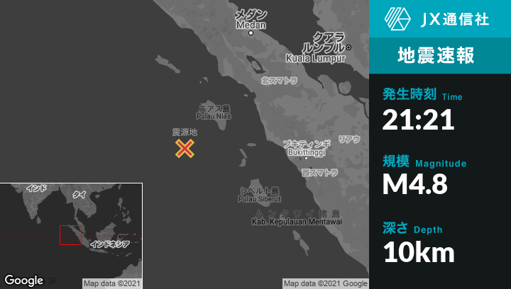| 震源地 | インドネシアのSinabangから南261kmの地点 |