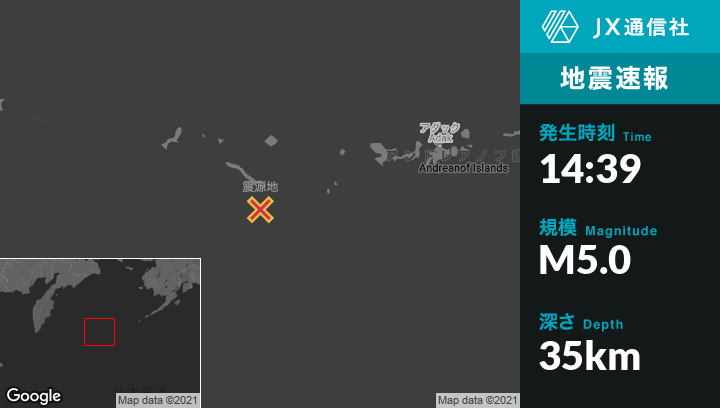 | 震源地 | アラスカのAdakから西南西290kmの地点 |