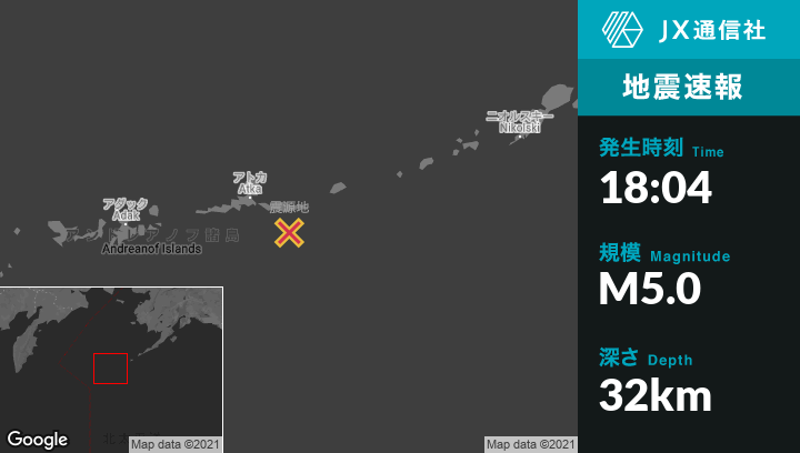 | 震源地 | アラスカのAtkaから南東64kmの地点 |