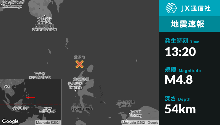 | 震源地 | インドネシアのTobeloから北北西120kmの地点 |