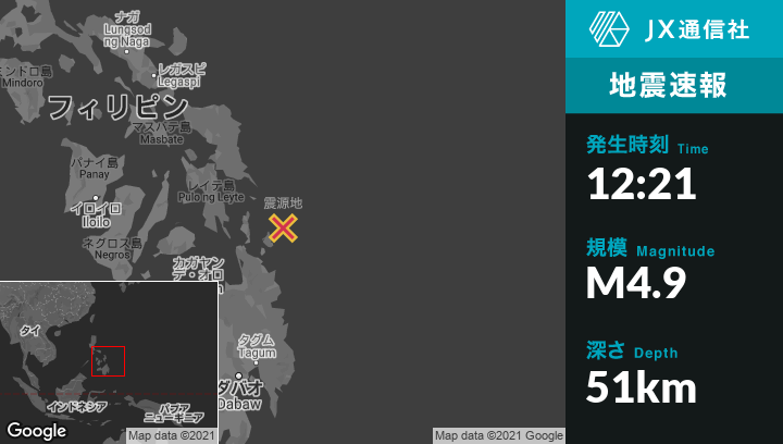 6月06日 12:21頃、フィリピンのSanta Monicaから北東42kmの地点でM4.9の地震がありました。
