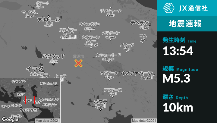 6月06日 13:54頃、イランのĪlāmから南西29kmの地点でM5.3の地震がありました。