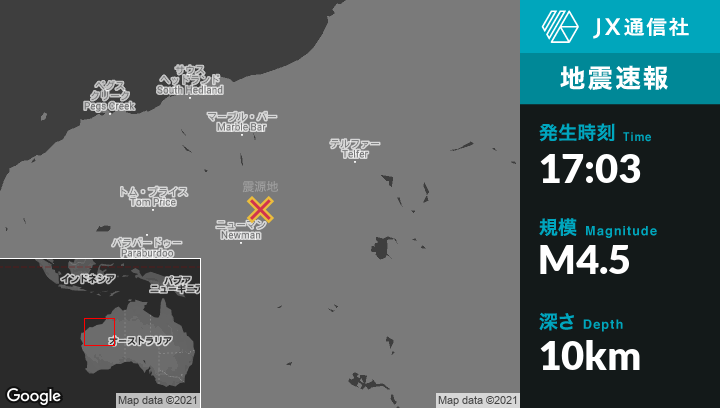 | 震源地 | オーストラリアのNullagineから南75kmの地点 |