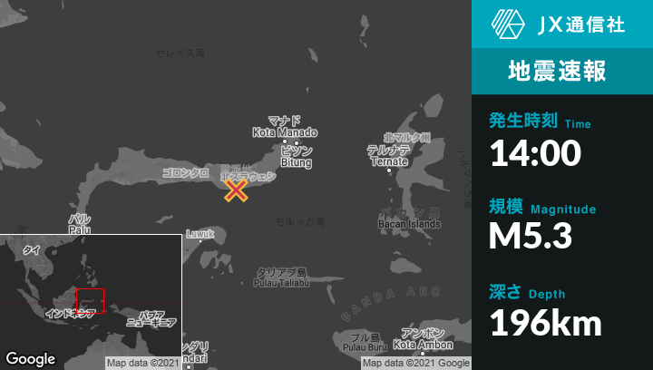 | 震源地 | インドネシアのGorontaloから東南東67kmの地点 |