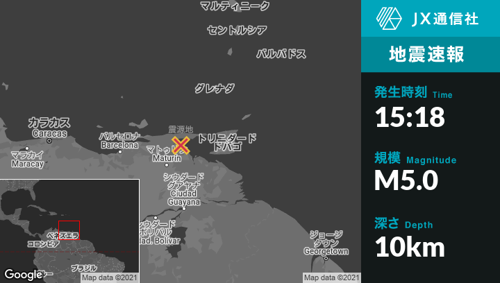 | 震源地 | ベネズエラのGüiriaから西南西51kmの地点 |