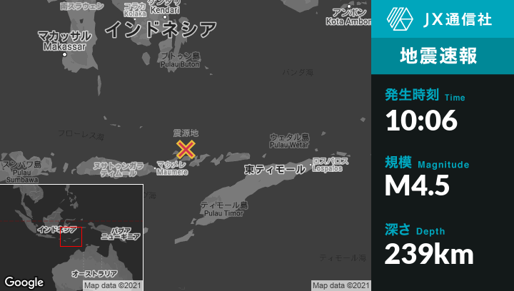 | 震源地 | インドネシアのMaumereから北東129kmの地点 |