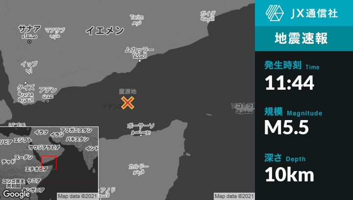 | 震源地 | ソマリアのBosasoから北北西183kmの地点 |