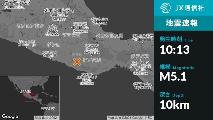 | 震源地 | メキシコのSan Juan Cabeza del Ríoから東6kmの地点 |