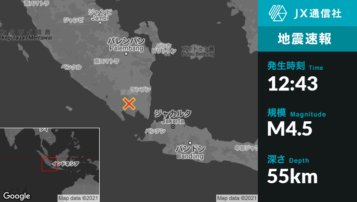 | 震源地 | インドネシアのKotabumiから南27kmの地点 |