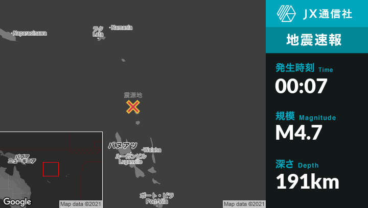| 震源地 | バヌアツのSolaから北北西49kmの地点 |