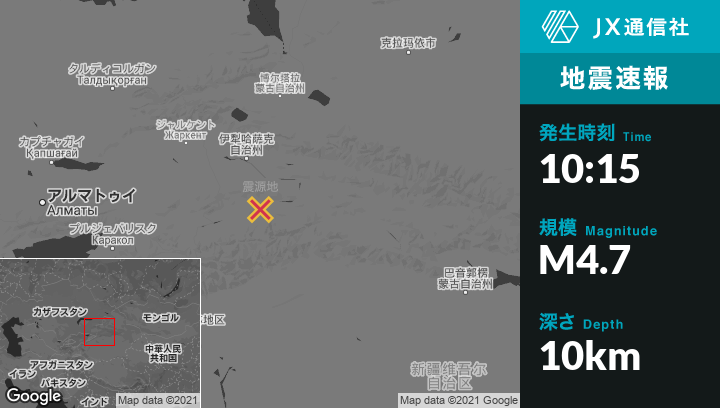 7月02日 10:15頃、中国のQapqalから南南東81kmの地点でM4.7の地震がありました。