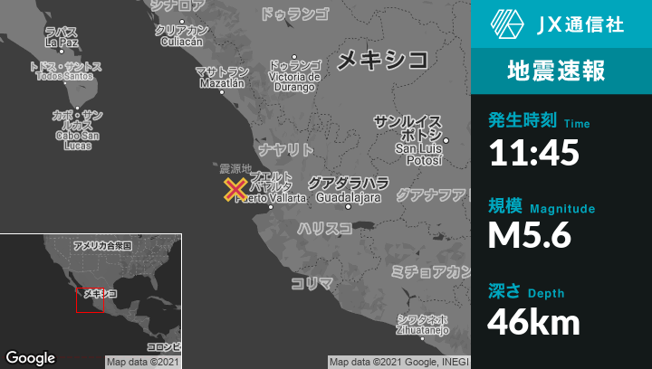 | 震源地 | メキシコのCorral del Risco (Punta de Mita)から北西74kmの地点 |