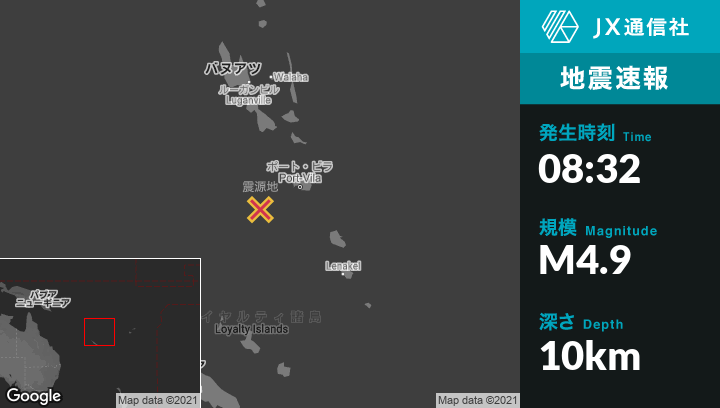 | 震源地 | バヌアツのPort-Vilaから西南西99kmの地点 |