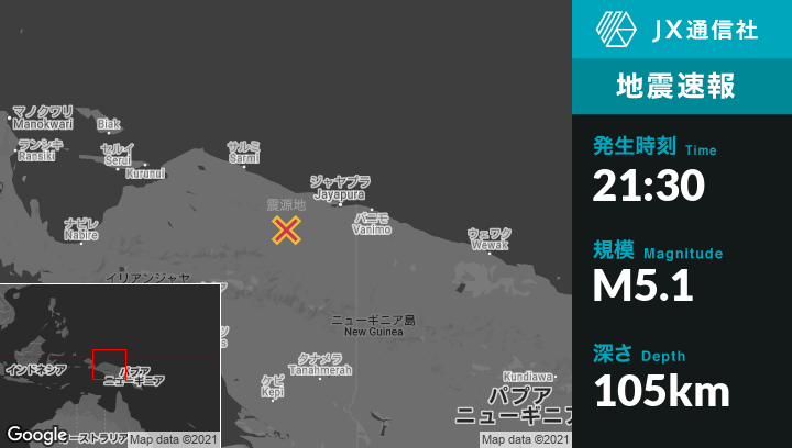 | 震源地 | インドネシアのAbepuraから西南西124kmの地点 |