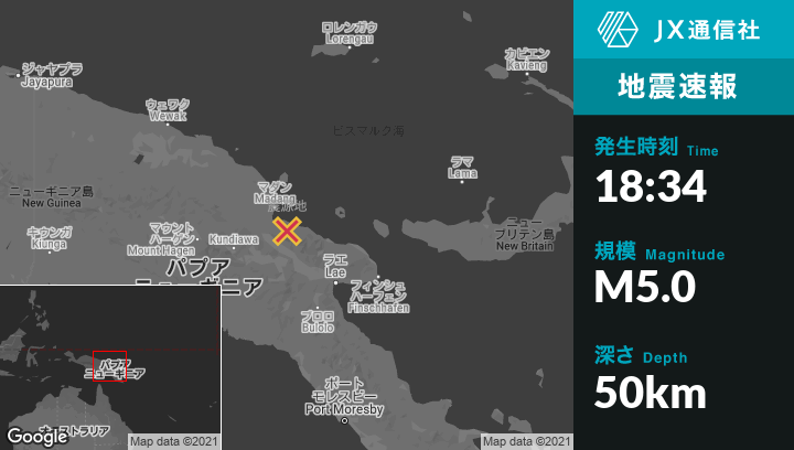 | 震源地 | パプアニューギニアのMadangから南東46kmの地点 |