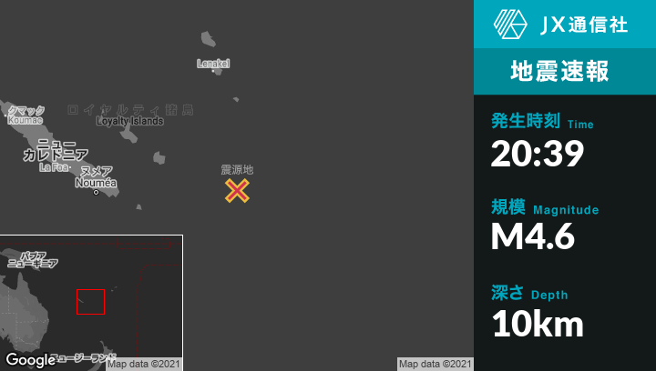 | 震源地 | ニューカレドニアのTadineから東南東212kmの地点 |