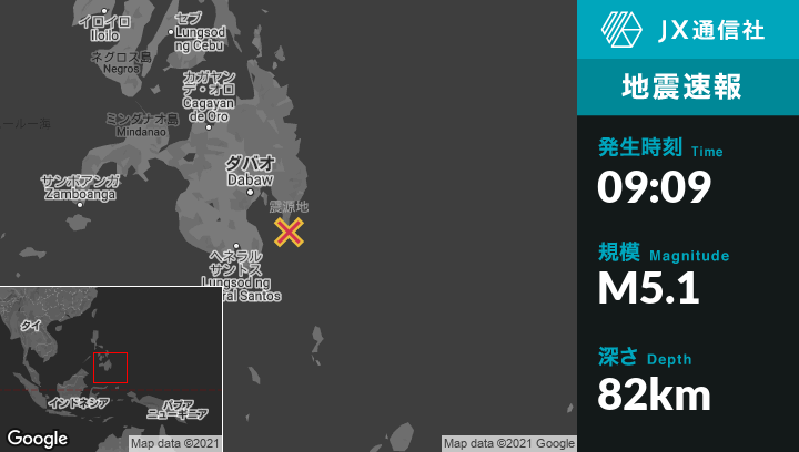 | 震源地 | フィリピンのNanganから東北東10kmの地点 |