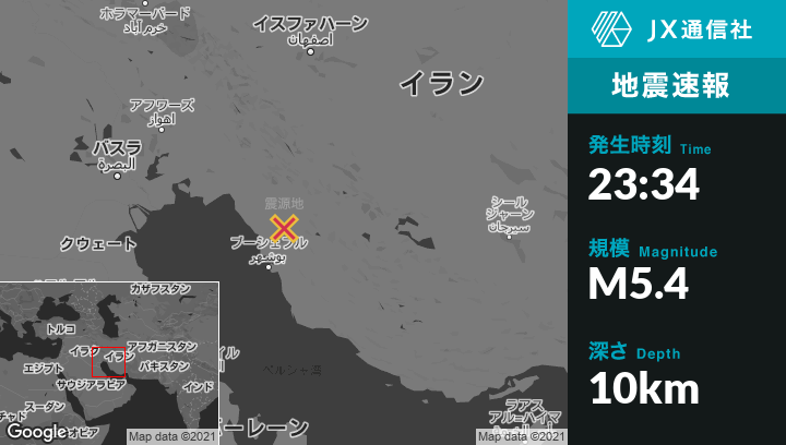 7月18日 23:34頃、イランのBorāzjānから北49kmの地点でM5.4の地震がありました。
