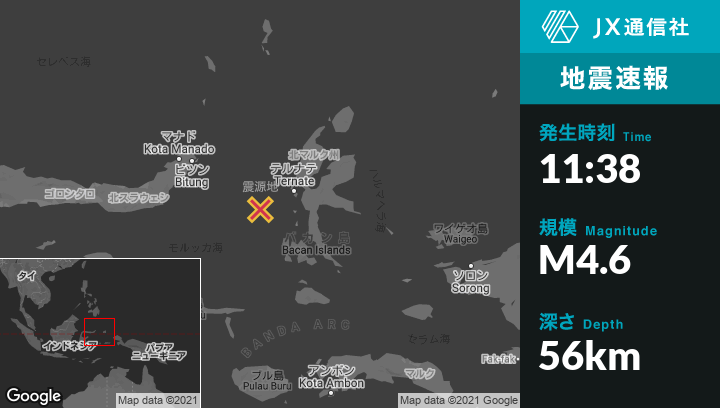 | 震源地 | インドネシアのTernateから西南西91kmの地点 |