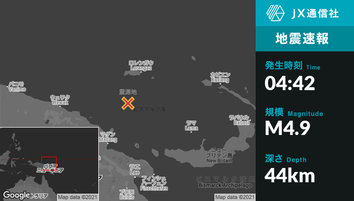 | 震源地 | パプアニューギニアのLorengauから南南西154kmの地点 |