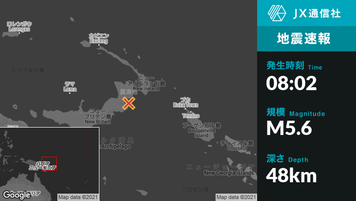 | 震源地 | パプアニューギニアのKokopoから南79kmの地点 |