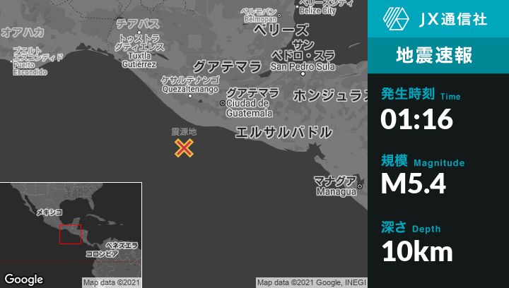 | 震源地 | グアテマラのNueva Concepciónから南南西100kmの地点 |