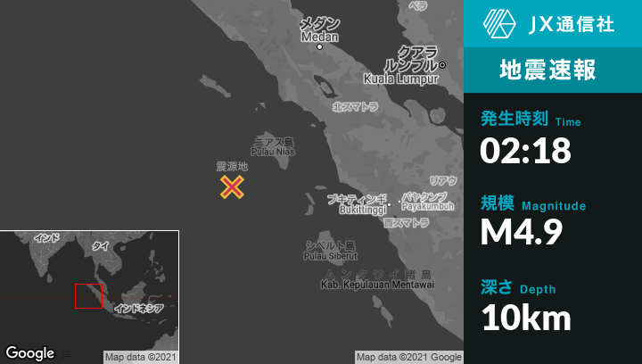 | 震源地 | インドネシアのSinabangから南244kmの地点 |