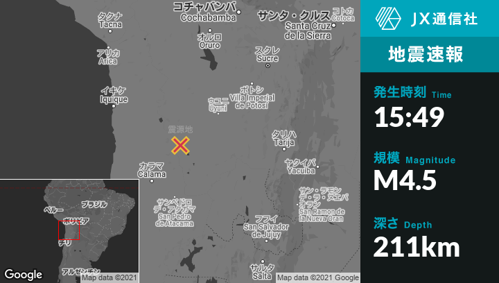| 震源地 | ボリビアのUyuniから南西155kmの地点 |