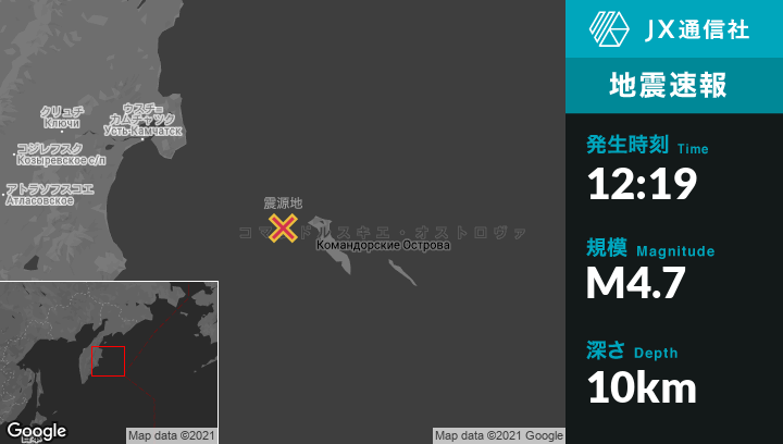 | 震源地 | ロシアのUst’-Kamchatsk Staryyから東南東205kmの地点 |