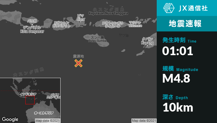 | 震源地 | インドネシアのWaingapuから南西258kmの地点 |