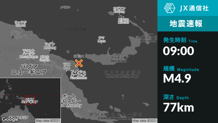 | 震源地 | パプアニューギニアのFinschhafenから北59kmの地点 |