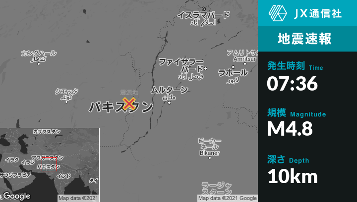 8月29日 07:36頃、パキスタンのBarkhanから北北東41kmの地点でM4.8の地震がありました。