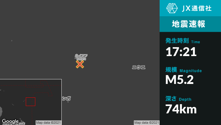 9月01日 17:21頃、トンガのNeiafuから南西14kmの地点でM5.2の地震がありました。